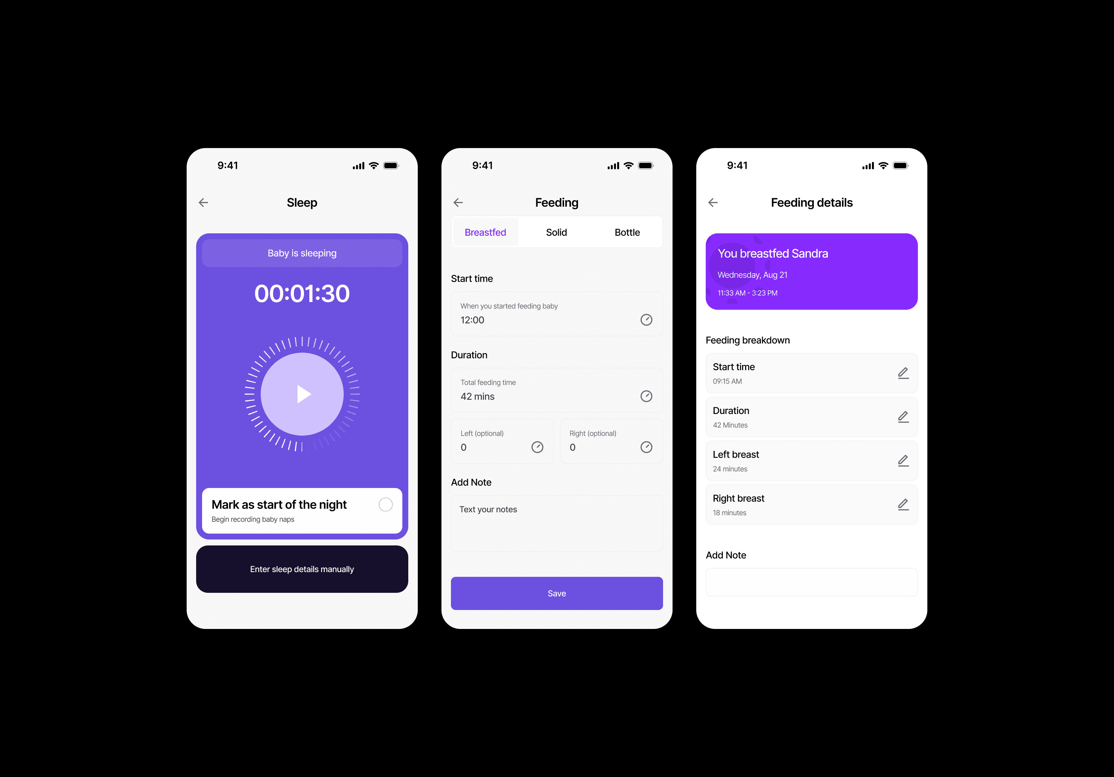 Nursing mothers often struggle to track their babies' sleep, feeding, and diaper changes, leading to stress and exhaustion. Sleeplady simplifies this by providing: