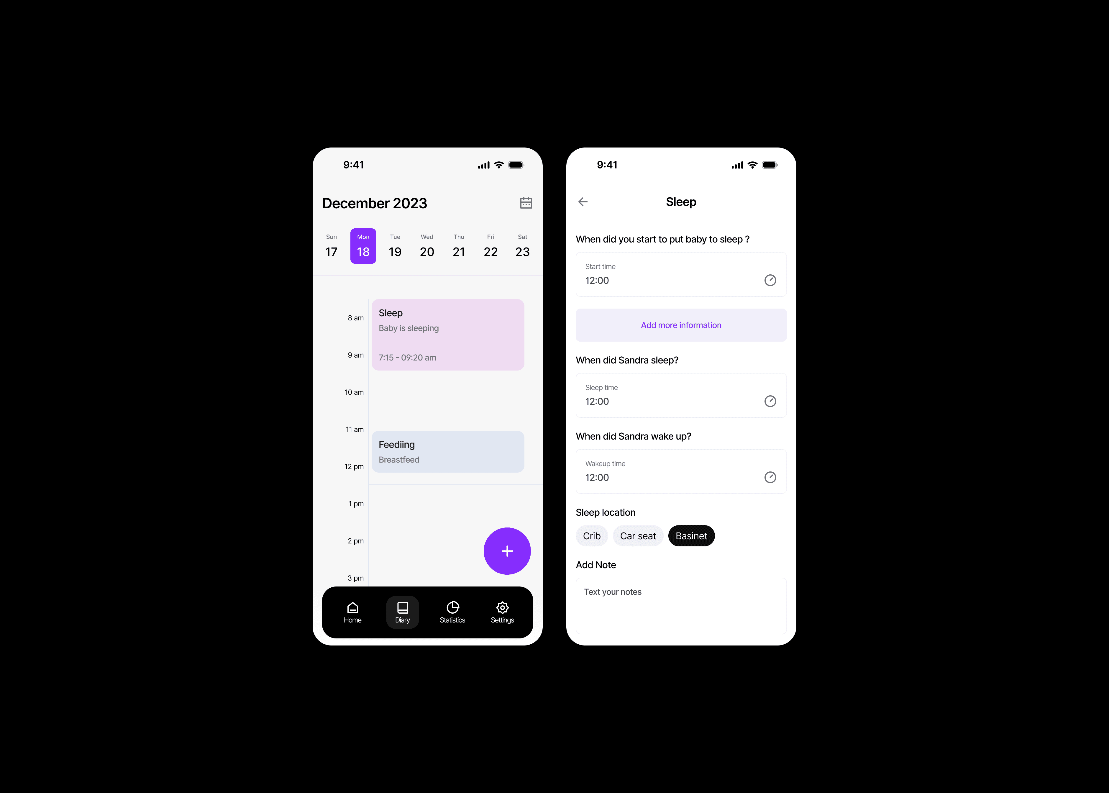 Activity Monitoring – Parents can easily record and track their baby's routines.